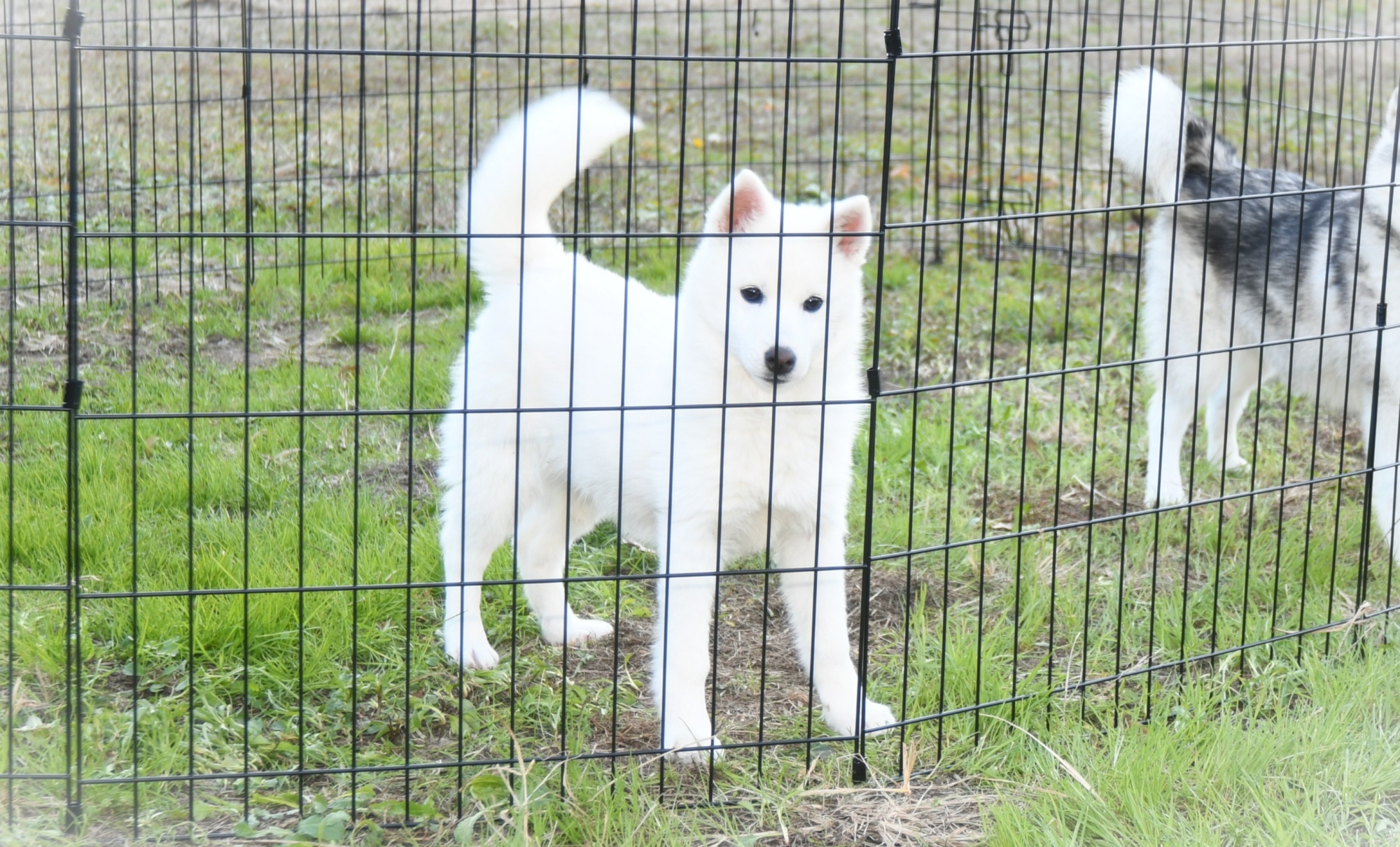 ピンと立った耳、キリッとした顔立ち、ちから強い尻尾が特徴的です。体は体高よりも体長がわずかに長く、筋肉質で引き締まったコンパクトな体型をしています。